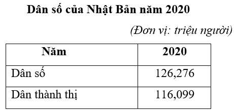 Cho bảng số liệu:Căn cứ vào bảng số liệu trên, cho biết tỉ lệ dân thành thị của Nhật