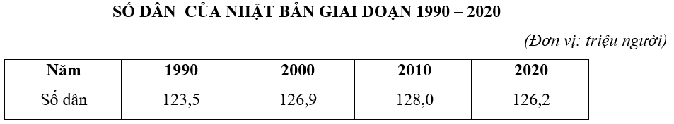 Cho bảng số liệu:a) Vẽ biểu đồ cột biểu hiện sự thay đổi số dân Nhật Bản giai đoạn