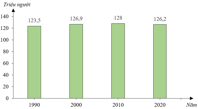 a) Vẽ biểu đồ cột biểu hiện sự thay đổi số dân Nhật Bản giai đoạn 1990 - 2020.