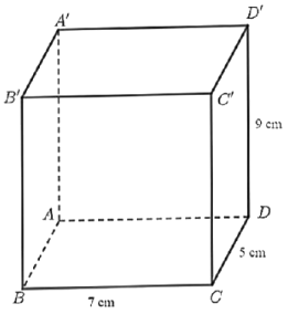 Cho hình hộp chữ nhật với kích thước như hình vẽ dưới đây.