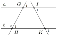 Cho hình vẽ, biết $\widehat{G_{1}} = 50^{{^\circ}}$, $\widehat{I_{1}} = 60^{{^\circ}}$, $\widehat{K_{1}} =