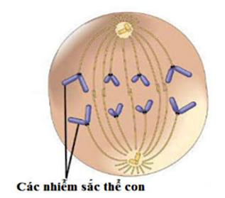 Kì sau: NST đơn, thoi phân bào kéo nhiễm sắc thể về hai cực đối diện của tế bào