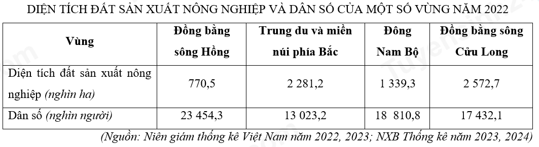 Bình quân đất sản xuất nông nghiệp = Tổng diện tích đất sản xuất nông nghiệp/Số dân