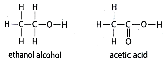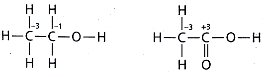 Xác định số oxi hoá riêng của từng nguyên tử C và số oxi hoá trung bình của hai nguyên tử C trong phân tử ethanol alcohol và acetic acid: