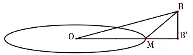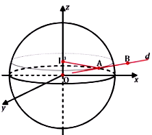 Gọi B’ là hình chiếu của B xuống (Oxy). Gọi M là giao điểm của OB’ với mặt cầu.