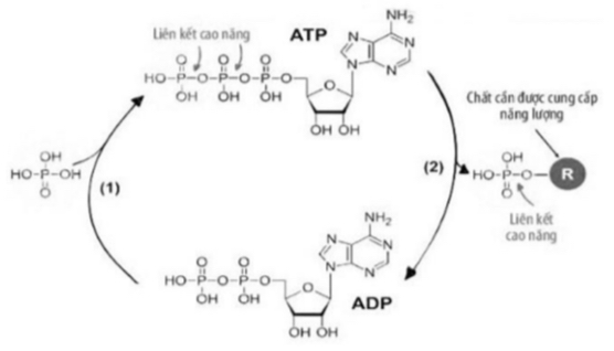 Hình dưới đây thể hiện sự biến đổi thuận nghịch của ATP trong tế bào. Mỗi nhận sau đây