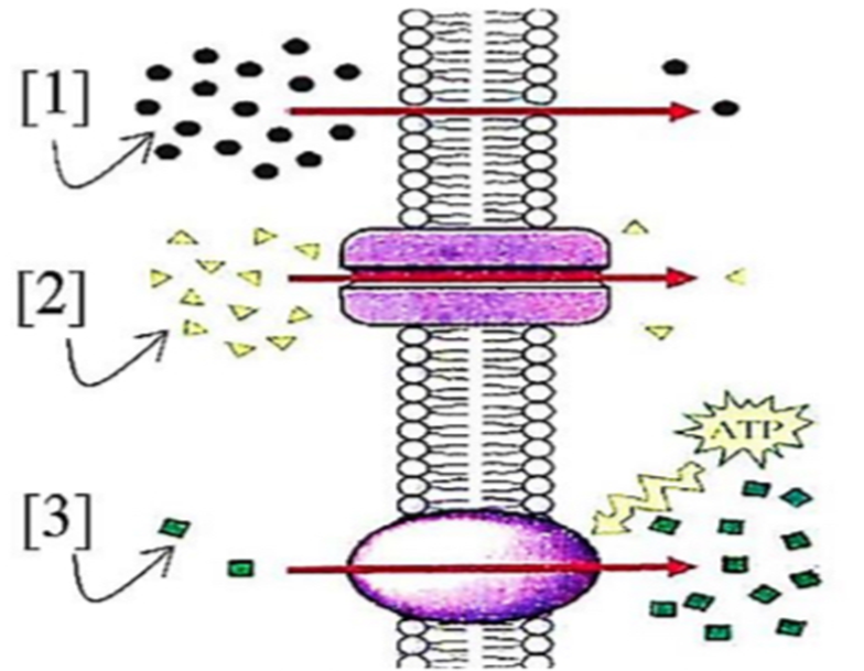 [1]: Khuếch tán đơn giản – không cần ATP.