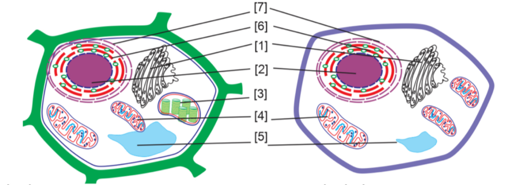 Vị trí số mấy là bào quan có hai lớp màng trơn, chứa các hệ sắc tố hấp thụ ánh sáng cùng các enzyme và protein tham gia vào quá trình chuyển hóa năng lượng và tổng hợp chất sống?