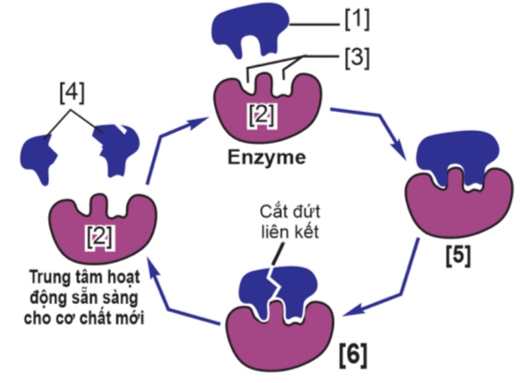 Dựa vào sơ đồ minh họa về cơ chế tác động của enzyme sau đây: