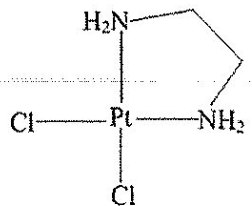 Phân tử phức chất cis-dichloro(ethylendiammine)platinium(II) có cấu tạo như hình sau: