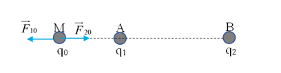 Lực điện tác dụng lên q0 là: $\overset{\rightarrow}{F} = {\overset{\rightarrow}{F}}_{10} + {\overset{\rightarrow}{F}}_{20} = \overset{\rightarrow}{0}$