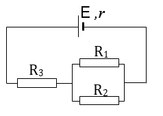 Cho mạch điện như hình vẽ, trong đó nguồn điện có suất điện động $E = 6V$ và có điện trở trong r = 2$\Omega$; các điện trở ở mạch ngoài là R1 = 6$\Omega$; R2 = 12$\Omega$và R3 = 4$\Omega$. Xác định:
