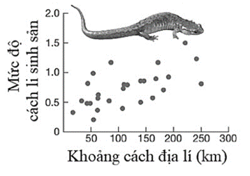 Người ta đã thu thập các cá thể loài kỳ nhông Desmognathus ochrophaeus ở các quần thể sống ở các khu vực địa lí khác nhau, nhốt chung trong lồng thí nghiệm và quan sát mức độ cách li sinh sản giữa chúng thông qua tỉ lệ kết đôi giao phối, kết quả thu được như hình bên.
