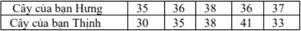 Bạn Hưng và bạn Thịnh thống kê kết quả chiều cao (đơn vị: xăng-ti-mét) của 5 cây nguyệt quế mà mỗi người trồng sau một thời gian như sau: