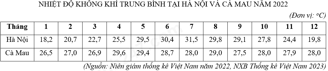 | b) Cà Mau có nhiệt độ trung bình năm lớn hơn Hà Nội do không chịu ảnh hưởng của gió mùa Đông Bắc. | ||