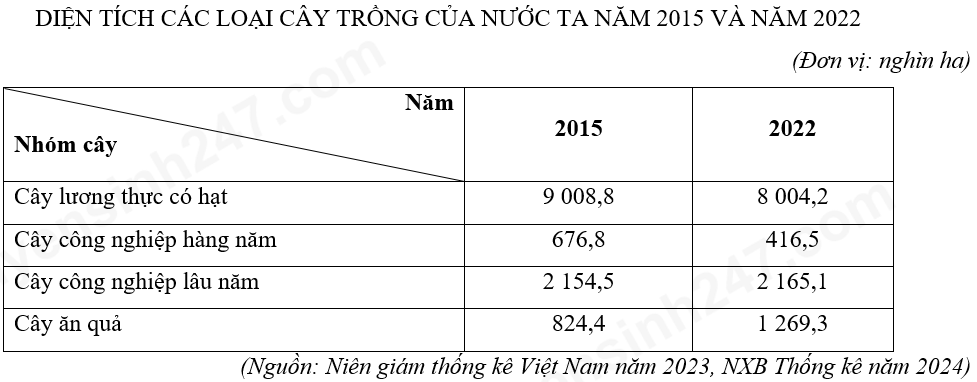 Cho bảng số liệu:Dựa vào bảng số liệu, hãy cho biết trong các loại cây trồng của nước ta