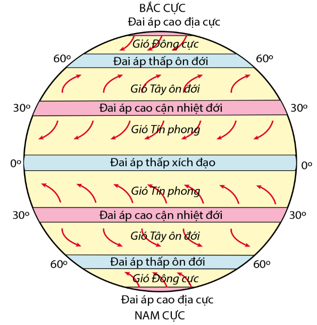 Phân bố các đai khí áp và một số loại gió thổi thường xuyên trên Trái Đất
