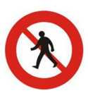 Biển báo: Hình người đi bộ, gạch chéo đỏ.