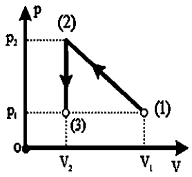 | b) Quá trình biến đổi trạng thái từ (1) → (2) là quá trình đẳng nhiệt. | ||