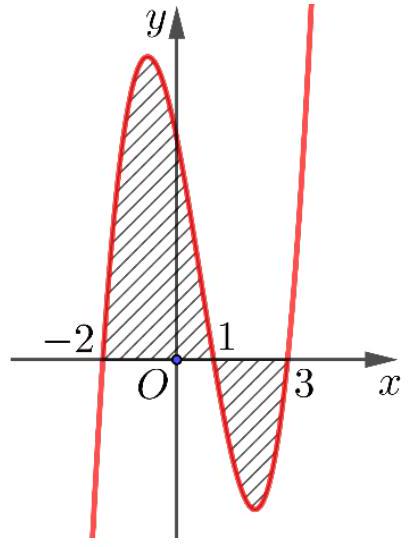 Cho hàm số liên tục trên Gọi S là diện tích hình phẳng giới hạn bởi các đường và (như hình vẽ). Mệnh đề nào dưới đây đúng?