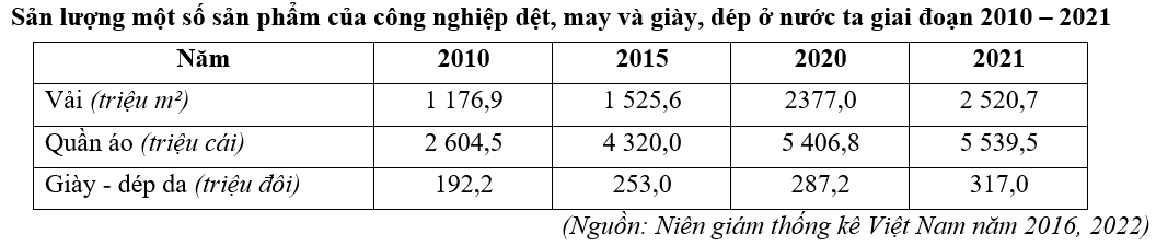 a) Dựa vào bảng số liệu và nội dung ngành công nghiệp dệt, may và giày, dép.