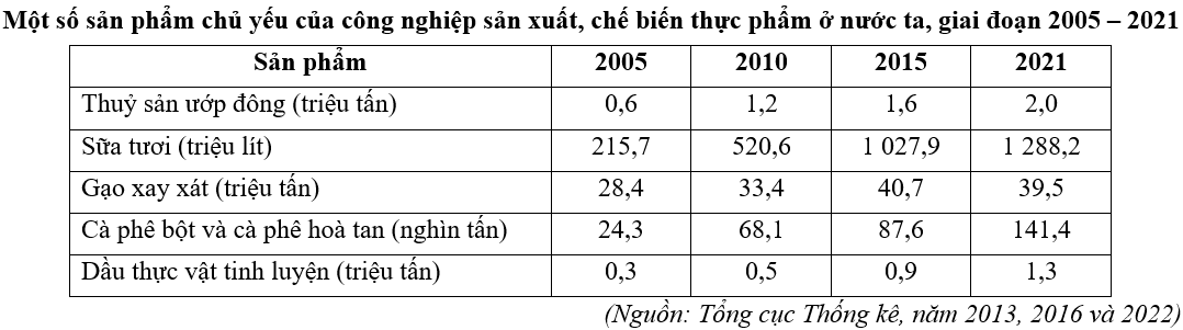 Lấy sản lượng cà phê bột và cà phê hòa tan năm 2021 trừ sản lượng cà phê bột và cà phê hòa tan năm 2005.