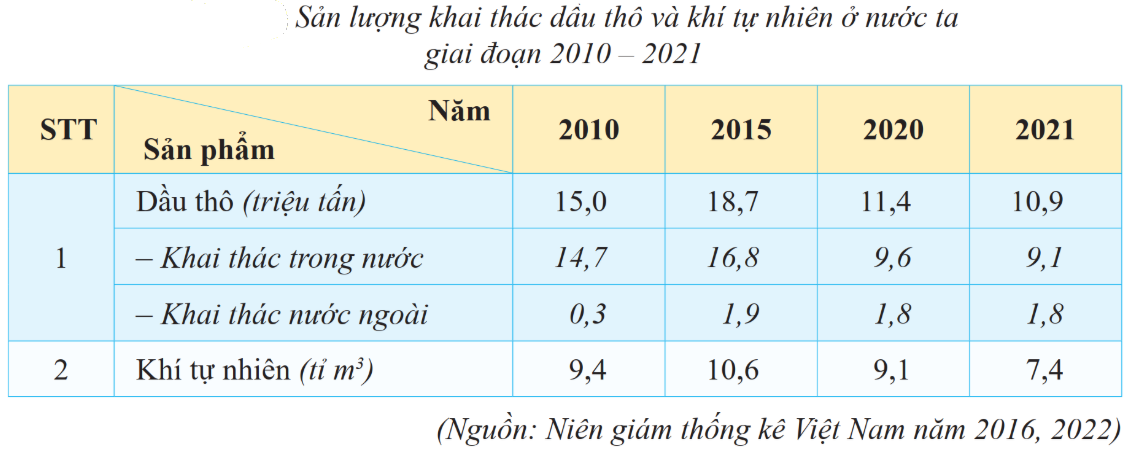 Dựa vào đơn vị của dầu thô và khí tự nhiên. Từ đó, lựa chọn dạng biểu đồ thích hợp nhất.