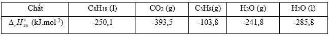 Biến thiên enthalpy chuẩn cho quá trình đốt cháy octane là _______ kJ