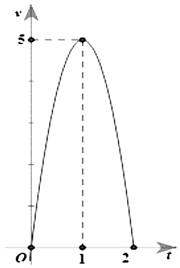 Một người chạy trong 2 giờ, vận tốc $v\left( {km/h} \right)$ phụ thuộc vào thời gian $t(h)$ có