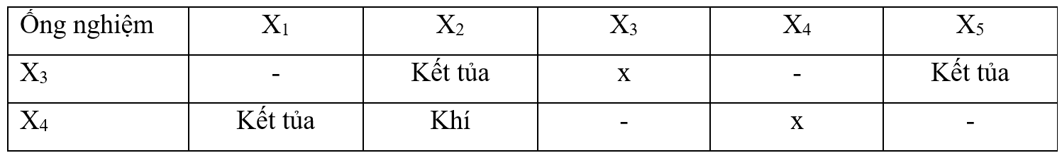 Ghi chú : Dấu (-) : Không có hiện tượng; dấu x : Không thực hiện thí nghiệm.