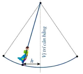 Hội Lim (tỉnh Bắc Ninh) được tổ chức hàng năm vào mùa xuân thường có trò chơi đánh đu. Khi người chơi nhún đều, cây đu sẽ đưa người chơi đu dao động ổn định quanh vị trí cân bằng (hình vẽ). Nghiên cứu trò chơi này, người ta thấy khoảng cách h (m) từ vị trí người chơi đu đến vị trí cân bằng được biểu diễn theo thời gian t (s) (với $t \geq 0$) bởi hệ thức $h = |d|$, với$d = 3\cos\left\lbrack {\dfrac{\pi}{3}\left( {2t - 1} \right)} \right\rbrack(m)$, trong đó quy ước d > 0 khi vị trí cân bằng ở sau lưng người chơi và d < 0 trong trường hợp ngược lại.