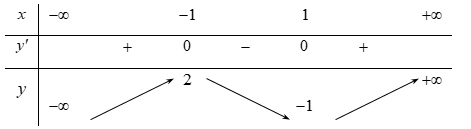 Cho hàm số \(y = f\left( x \right)\) xác định và liên tục trên khoảng \(\left( { - \infty ; + \infty } \right),\) có bảng biến thiên như hình sau: