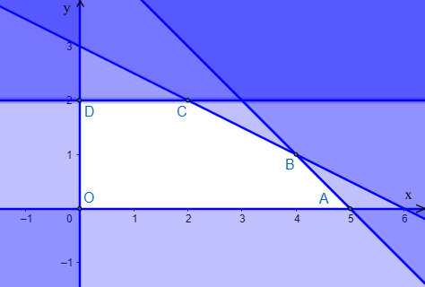 Lập hệ bất phương trình 2 ẩn, biểu diễn miền nghiệm. Khi đó tiền lãi là $F = 3x + 5y$ lớn nhất tại 1 trong các đỉnh của đa giác miền nghiệm.