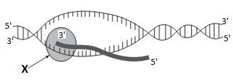 Hình vẽ dưới đây mô tả một cơ chế di truyền cấp độ phân tử đang diễn ra. Cấu trúc X trên hình vẽ là