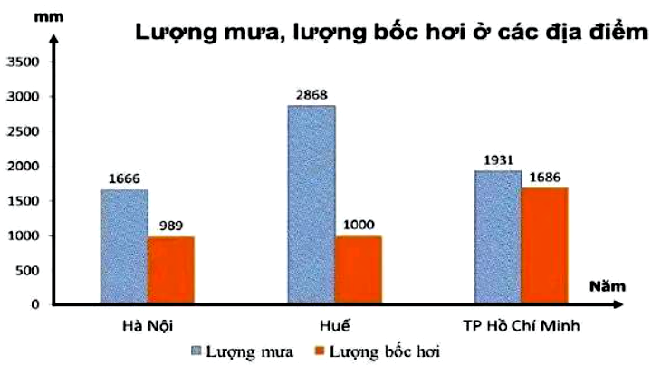 Căn cứ vào biểu đồ, cho biết trị số cân bằng ẩm của Thành phố Hồ Chí Minh là bao nhiêu mm? (làm tròn kết quả đến hàng đơn vị)