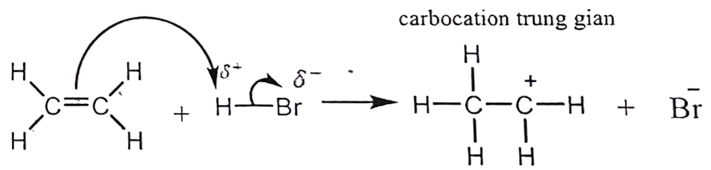 Phản ứng giữa ethylene với HBr: CH2=CH2 + HBr $\rightarrow$CH3CH2Br* Giai đoạn 1 của phản ứng là quá