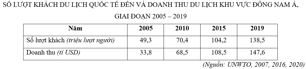 | b) Doanh thu du lịch năm 2015 - 2019 tăng 38,5 tỉ USD. | ||