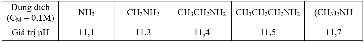 Một nhóm học sinh tiến hành thí nghiệm đo pH để so sánh lực base của một số amine và ammonia trong dung môi nước với giả thuyết “Khi số lượng carbon trong phân tử amine càng nhiều thì lực base của amine càng tăng làm cho pH của dung dịch tăng”. Nhóm học sinh tiến hành như sau:
