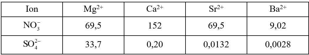 Cho độ tan (g/100 g H2O) ở 20°C của một số muối sulfate và nitrate của kim loại nhóm IIA như sau: