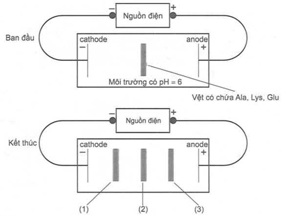 Một thí nghiệm được mô tả như hình bên dưới :Giá trị pH mà khi đó amino acid có nồng độ