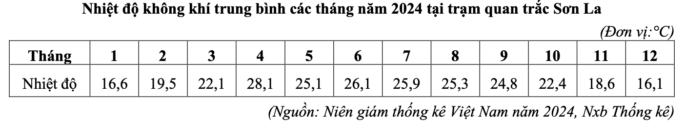 Cho bảng số liệu:Căn cứ vào bảng số liệu trên, hãy cho biết nhiệt độ không khí trung bình