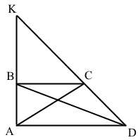 b) Kéo dài cạnh AB về phía B; kéo dài cạnh DC về phía C chúng gặp nhau tại K. Tính độ dài đoạn KB?
