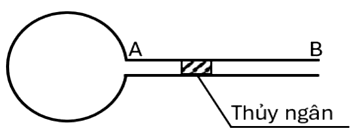Một nhóm học sinh sử dụng bình thuỷ tinh hình cầu gắn với một ống nhỏ AB có tiết diện $0,1\text{~cm}^{2}$ trong đó có giọt thủy ngân dịch chuyển được để khảo sát quan hệ giữa các thông số trạng thái của khí trong bình.