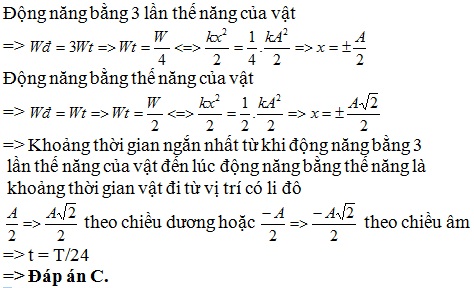 một con lắc lò xo dao động điều hòa trên phương nằm ngang với chu kì T. Chọn gốc thế năng ở vị trí cân bằng của vật. Khoảng thời gian ngắn nhất kể từ khi động năng của vật bằng 3 lần thế năng đến khi động năng của vật bằng thế năng của vật