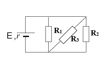 Trong đó nguồn điện có suất điện động 6 V và điện trở trong không đáng kể. Các điện trở R1 = R2 = 30$\Omega$; R3 = 7,5 $\Omega$.