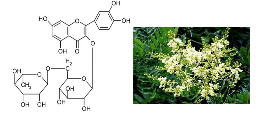 Rutin có nhiều trong hoa hoè. Rutin có tác dụng làm bền vững thành mạch, chống co thắt, chống phóng xạ tia X, chống viêm cầu thận cấp. Rutin có công thức phân tử C27H30O16 và có công thức cấu tạo như hình dưới: