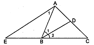 Tam giác $ABC$ có tia phân giác của góc $B$ cắt $AC$ ở $D$. Qua $A$ kẻ đường thẳng song song với $BD$, đường thẳng này cắt đường thẳng $BC$ ở $E$. Chứng minh tam giác $BAE$ cân.