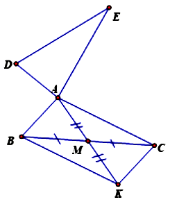 Trên tia đối của tia $MA$ lấy $K$ sao cho $MK = MA$