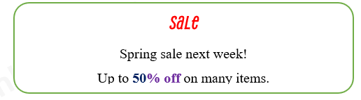 "Spring sale next week!": Chương trình giảm giá mùa xuân vào tuần tới!