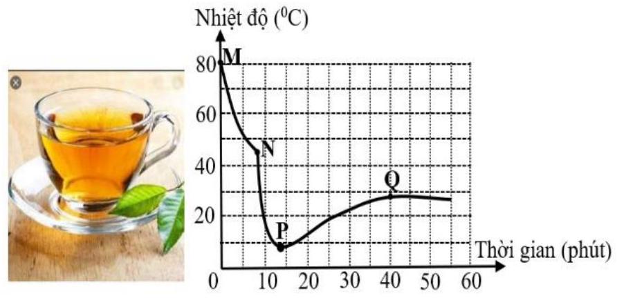 + Đoạn MN: Nhiệt độ giảm chậm, đây là quá trình nguội tự nhiên của trà nóng.